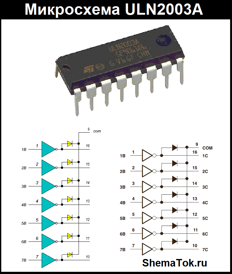 Полные характеристики и схемы включения ULN2003A можно посмотреть в следующим разделе.