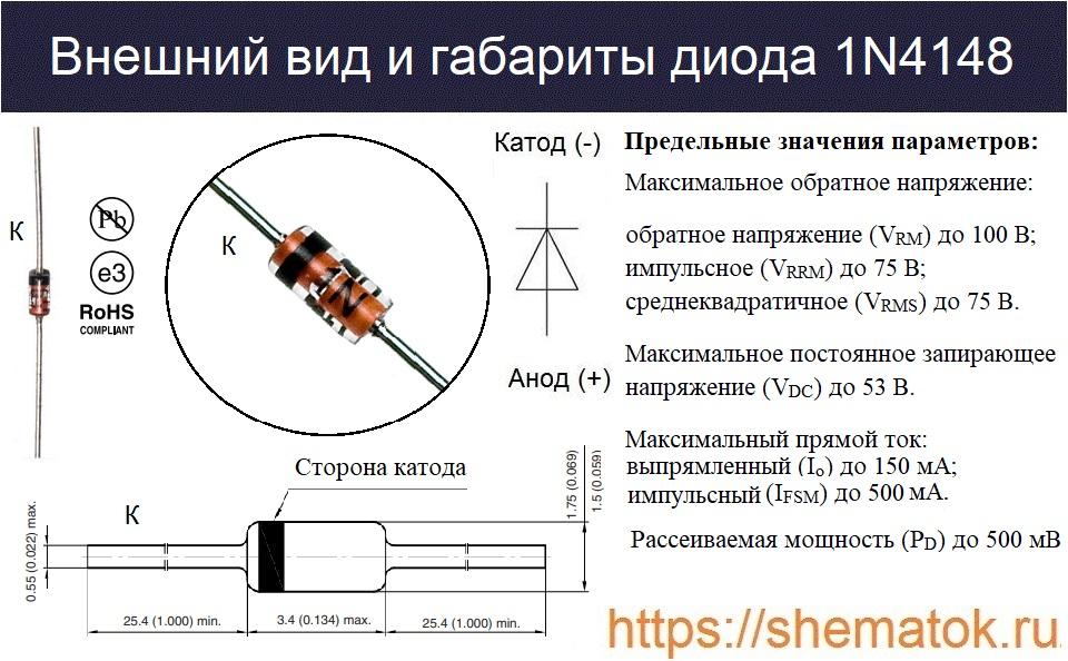 Скачать datasheet на 1n4148, в котором характеристики представлены на русском языке можно по ссылке.