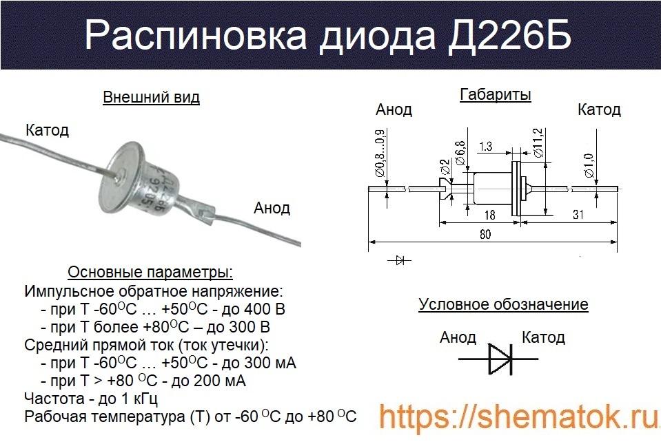 В статье рассмотрены технические характеристики Д226Б, кремниевого диода советских времен. В 1963 г. он пришёл на смену устаревшему германиевому собрату Д7. Тогда же, его стали повсеместно применятся в электронной промышленности в качестве основной замены для Д7. Он довольно часто встречается в диодных мостах блоков питания старой отечественной техники.