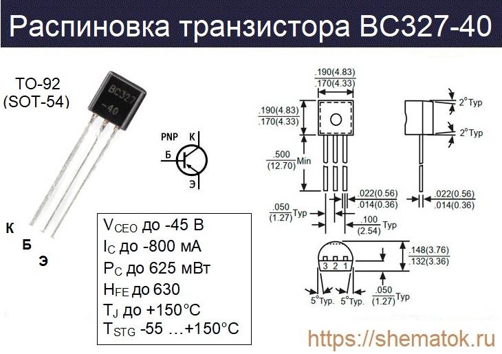 В статье рассмотрены основные характеристики, возможно, самого популярного транзистора европейской микроэлектронной промышленности BC327-40. Данный биполярный полупроводниковый триод обладает наибольшим коэффициентом HFE (до 630) в серии BC327-xx. Его последние версии могут использоваться в приложениях коммутации (с нагрузкой до 800 мА) и всевозможных схемах усиления низких частот (до 0.5 Вт).