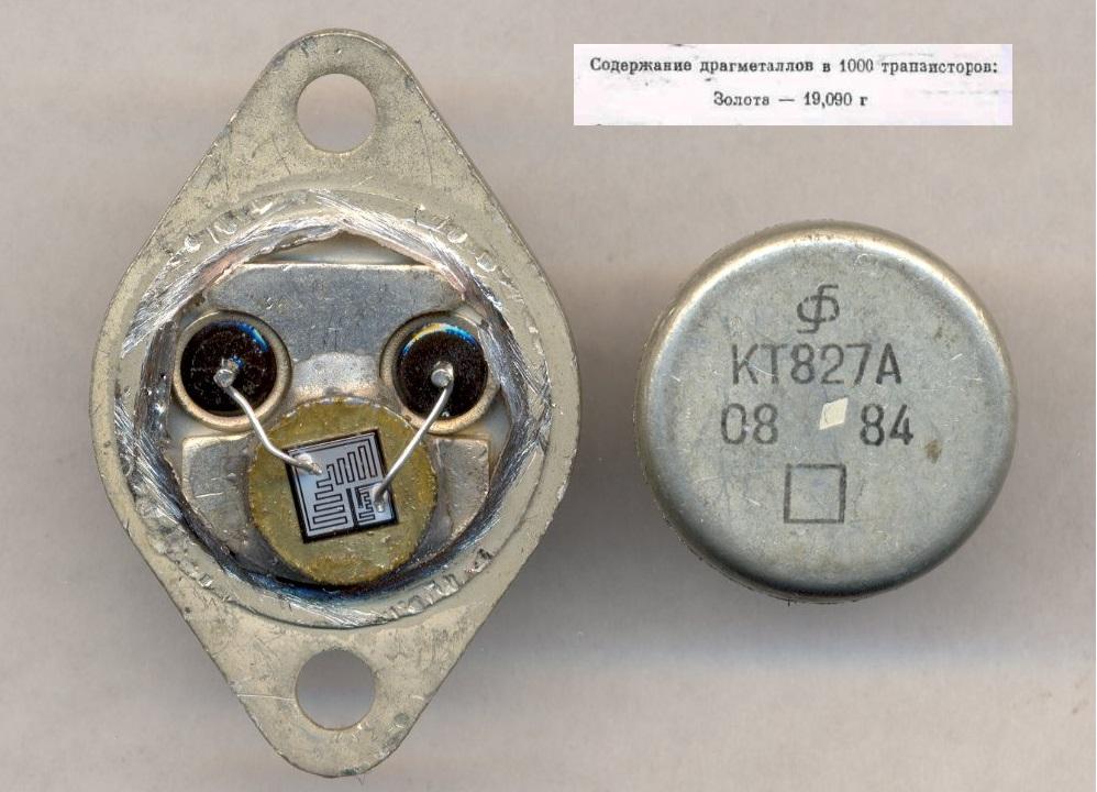 Не только из-за своей сложной конструкции, а из за содержании драгметаллов серия транзисторов КТ827 является достаточно дорогими устройствами. Вместе с тем, данные о ДГМ в различных источниках не совпадают.